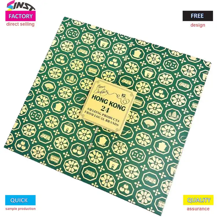 Tässä adventtikalenterin lahjarasiassa on lomalaskenta, jossa on 24 laatikkoa ja 1 erityinen lokero, joka palauttaa täydellisesti joulun pakkauksen purkamisen seremoniallisen tunteen. Se sopii erilaisille tuotteille, kuten suklaalle, kauneusnäytteille ja pienille lisävarusteille; Syvänvihreä tausta yhdistettynä kultakalvopainatukseen, jota täydentävät kaupungin siluetti ja tähtikuviot, ei vain huokuu huippuluokan tekstuuria, vaan myös juhlavaa tunnelmaa, mikä tekee hyllystä erittäin houkuttelevan.