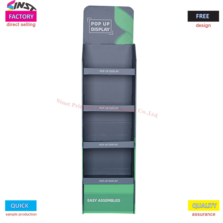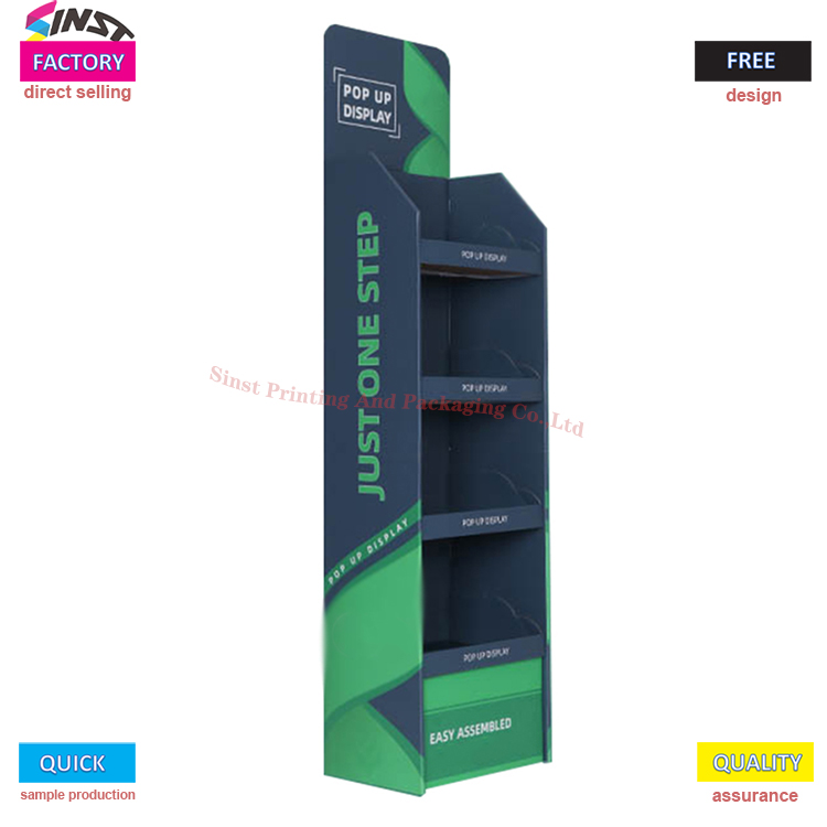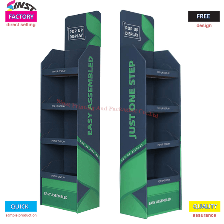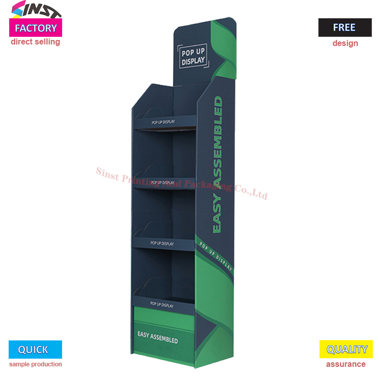 Cardboard Snack -näyttötelineen pop up -teline on valmistettu erittäin lujasta aaltopahvista. Pintaliimatekniikka voi olla veden- ja kosteudenkestävää, jolloin näyttötelineen käyttöikä on pidempi. Se on erittäin nopea koota. Pop-up-suunnittelu säästää enemmän aikaa ja antaa asiakkaille mielenrauhan;