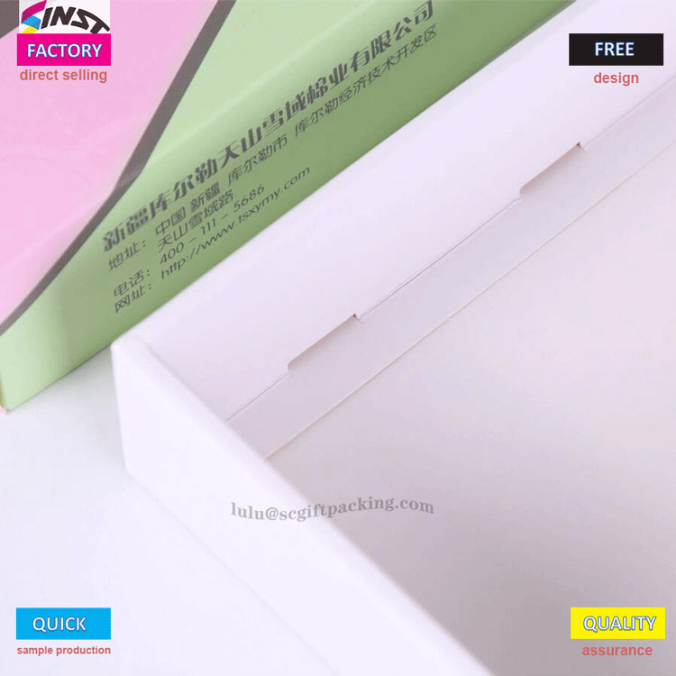 1. Korkealaatuinen materiaali: Valitse korkealaatuinen pahvi tai ympäristöystävällinen pahvi, jolla on hyvä puristusvastus ja kulutuskestävyys ja joka voi suojata sukkia tehokkaasti vaurioilta. Samanaikaisesti pinta voidaan painostaa kauniisti tuotteen visuaalisen vetovoiman parantamiseksi.