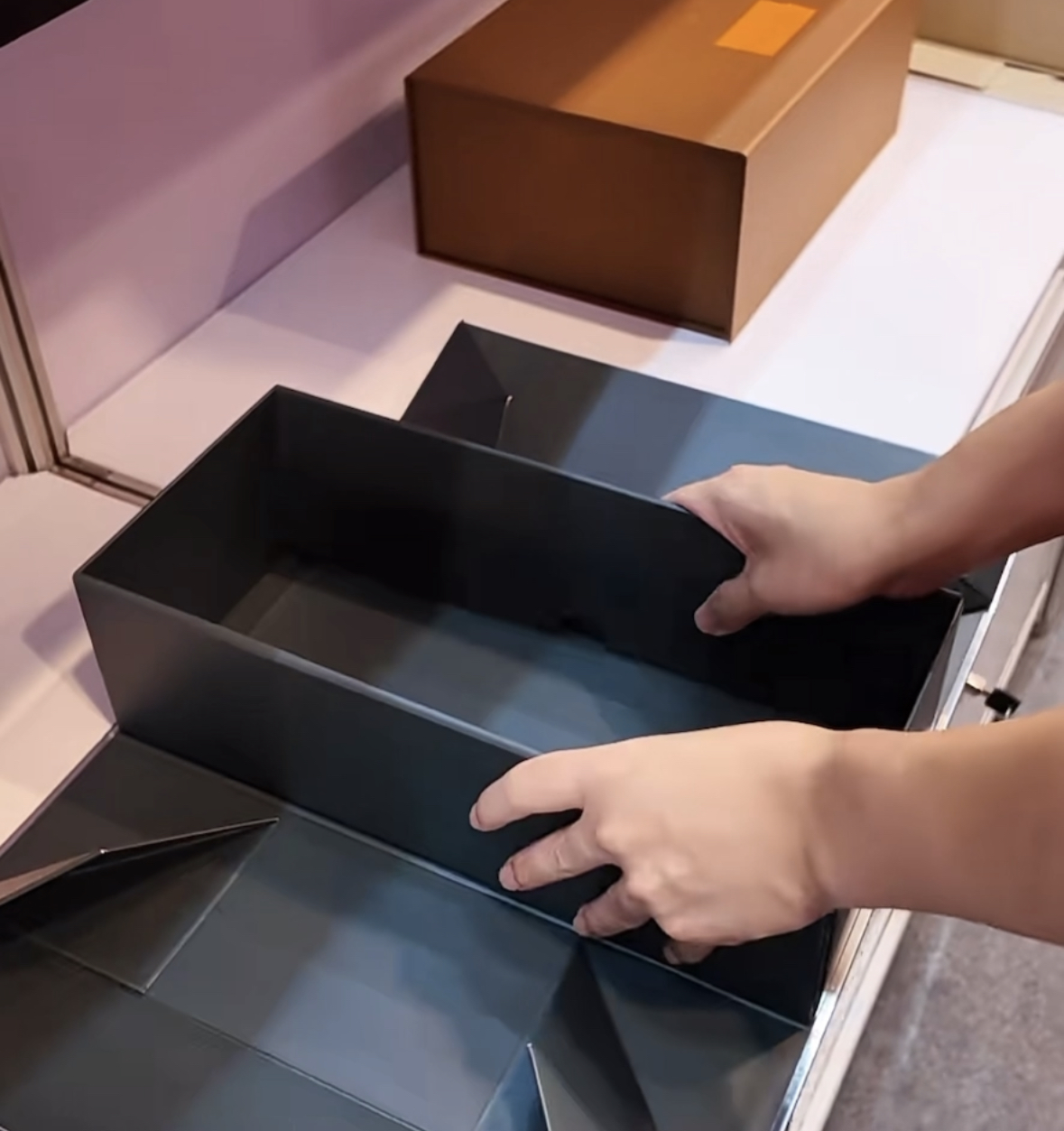 Tummanharmaan pohjaversion lisäksi tuote tarjoaa myös kaksoisvärivaihtoehtoja mustasta laatikosta ja ruskeasta laatikosta. Mustassa versiossa on sileä ja korkealaatuinen pinta, kun taas ruskea versio välittää lämpöä lämpimillä sävyillä. Molemmat värit sopivat käsintehtyihin lahjoihin, kulttuuri- ja luoviin tuotteisiin ja muihin skenaarioihin. "Yhden taiton avoimen, yhden painavan sulkemisen mukavuus - ei tarvita työkaluja, kokoonpano voidaan suorittaa 3 sekunnissa, mikä vähentää huomattavasti paikan päällä olevien asennusten aikakustannuksia offline -näyttelyiden ja markkinoiden kioskien käyttäjille.