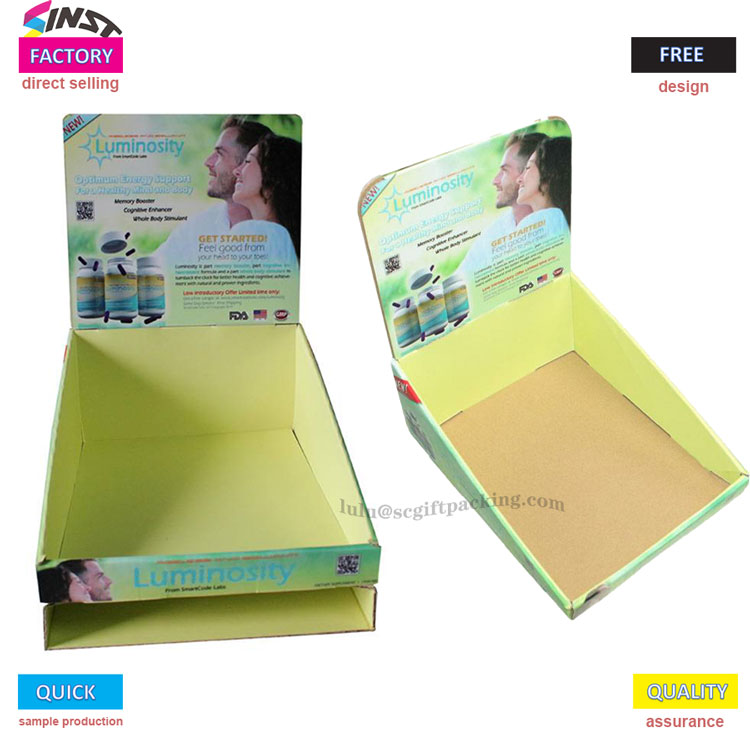 Pullotuotteiden Paper PDQ-pahvilaskurin näyttö on valmistettu erittäin lujasta ja ympäristöystävällisestä aallotetusta paperista, joka on kevyt, kestävä ja 100% kierrätettävä. Rakenteen napsautus ei vaadi työkaluja kootakseen 3 sekunnissa ja sopii erityyppisten pullojen ja tölkkien, kuten alkoholijuomien, kosmetiikka ja juomien, näyttämiseen.
