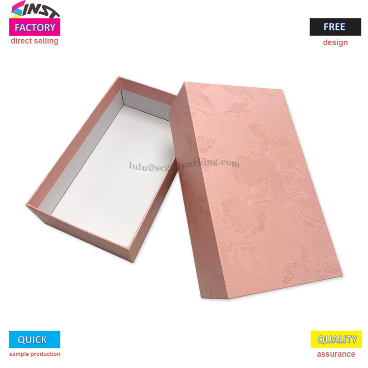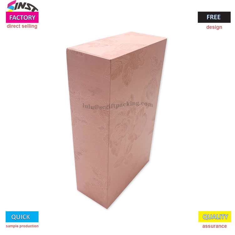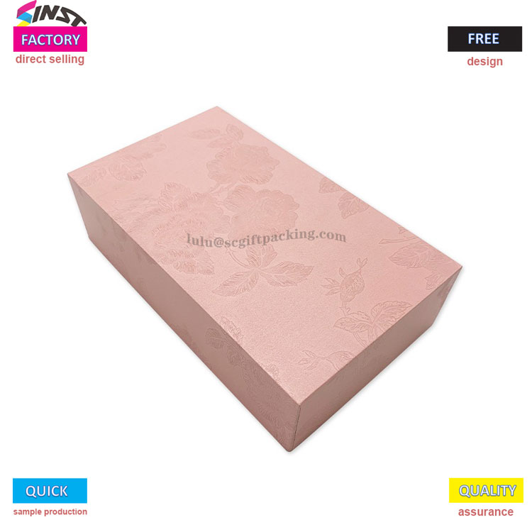 Silkkihuivi -lahjapakkaus kansi - valmistettu korkean kylläisyyden vaaleanpunaisesta FSC -sertifioidusta Kraft -paperista, pariksi magneettisen ylä- ja alakannen mallin kanssa, helppo avata ja sulje vahvalla tiivistyksellä. Laatikon pinta tukee prosesseja, kuten kuumaa leimaamista, UV -helpotusta, näytön tulostamista jne., Ja sitä voidaan räätälöidä brändilogoilla tai taiteellisilla kuvioilla. Vuora on valmistettu EVA -sienestä tai kierrätetystä sametista, joka sopii erilaisiin skenaarioihin, kuten koruihin, kauneuteen, jälkiruokiin jne., Tasapainottaessa ympäristönsuojelua ja ylellisyyttä.