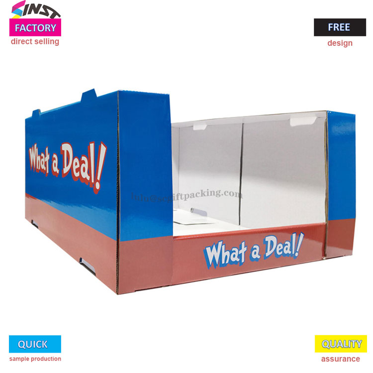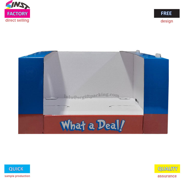 Tässä shampoon supermarketissa pinottu PDQ sisältää klassisen sinisen, valkoisen ja punaisen värimaailman, joka on herättävää ja herättävää. Rakenne on vakaa ja helppo pinota, säästäen tehokkaasti tilaa. Sanat 'Mikä sopimus! 'Lisää mainosilmapiiri, houkuttelee nopeasti kuluttajien huomion, parantaa tuotteiden altistumista ja ostohalua ja ovat ihanteellinen valinta terminaalinäyttöön.