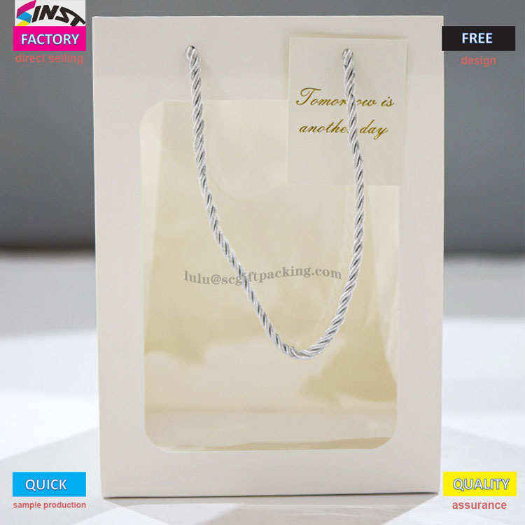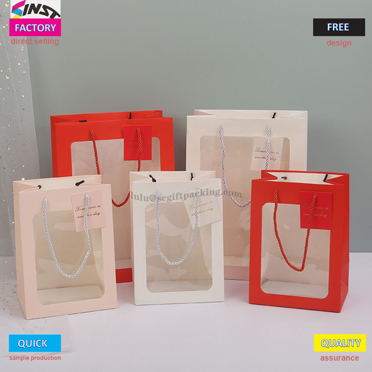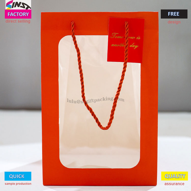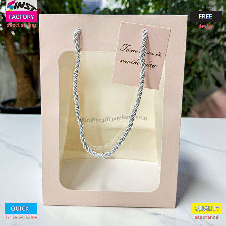 Pelkäätkö sokeat laatikot avaamaan lahjoja? Tämän käsilaukun mukana tulee läpinäkyvä ikkunan suunnittelu, joka mahdollistaa lahjan ääriviivat selkeästi ja tarjoaa mukavan otteen, mikä tekee siitä visuaalisen kohokohdan; Läpinäkyvä PVC -ikkunan suunnittelu voi esitellä herkullisia leivontaluomuksia ja lahjoja, kuten kakkuja, evästeitä, makaroneja jne. Kimpun ikkunan avauslaukku voi myös esitellä kauniita tuotteitasi perheelle ja ystäville räätälöityjen korttien kanssa. Käsinkirjoitetut siunaukset täyttävät ilmapiirin heti yksinoikeudella. Lahjat syntymäpäiville, lomalle ja vuosipäiville voidaan antaa sekä ulkonäöltään että tarkoituksella. Tietysti kukkalaukku on myös hyvä valinta päivittäiseen säilytykseen.